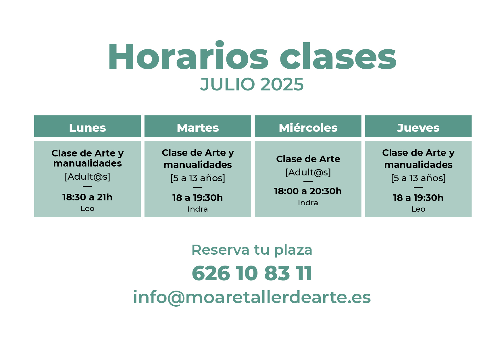 Reserva ya tu plaza para el mes de julio de 2025 abonando la mensualidad (40€ Adult@s – 35€ peques por 1 día semana, 65€ Adult@s – 55€ peques por 2 días a la semana)